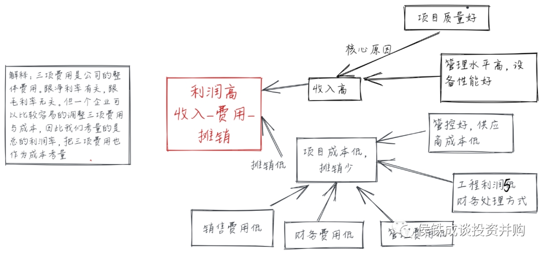 偉明的項目總體質(zhì)量也不錯,盈利能力天生不錯(50%毛利,一般正常垃圾焚燒發(fā)電項目的毛利在40%上下),然后利用商業(yè)模式調(diào)整+10%,三項費用的管控+5%。這樣綜合構(gòu)成了+20%以上的毛利。