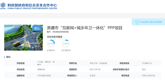 1.環(huán)衛(wèi)作業(yè)設(shè)備周期更新,按服務(wù)范圍增加投入專業(yè)環(huán)衛(wèi)設(shè)備(包括但不限于高壓清洗車、洗掃車等各類清掃保潔車輛、壓縮車、大型勾臂車等垃圾清運車輛);2.建設(shè)垃圾分類投放點289個(其中城區(qū)213個,鄉(xiāng)鎮(zhèn)中心76個)、新建鎮(zhèn)級垃圾壓縮站(處理量400噸/日)2座、項目停車場3個;同時新建智慧環(huán)衛(wèi)大數(shù)據(jù)信息管理平臺系統(tǒng)。落實國家關(guān)于堅持城鄉(xiāng)統(tǒng)籌,將城市環(huán)衛(wèi)工作模式延伸到鎮(zhèn)區(qū)、村(社區(qū))。通過常態(tài)化、精細(xì)化、智能化、高效化的運營管控體系,實現(xiàn)城鄉(xiāng)環(huán)境衛(wèi)生工作的“全方位覆蓋、無縫隙對接、一體化管理”目標(biāo),落實節(jié)能環(huán)保、促進環(huán)衛(wèi)市場化發(fā)展等政策情況。預(yù)算金額(元):178,490,000.00另據(jù)財政部政府和社會資本合作中心PPP項目管理庫公開信息顯示,英德市“互聯(lián)網(wǎng)+城鄉(xiāng)環(huán)衛(wèi)一體化”PPP項目發(fā)起時間2017年9月,所處階段為采購階段,回報機制為可行性缺口補助。公布披露信息顯示,英德項目采用BOT模式運作,合作期限30年,政府付費金額約1.65億元/年,合作期內(nèi)項目財政承受能力論證測算的財政支出責(zé)任需從預(yù)算中安排的支出責(zé)任匯總金額為477435.12萬元(約48億元)。截止目前,2022年度已開標(biāo)環(huán)衛(wèi)項目中,成交金額最高的是6月份開標(biāo)的海寧市區(qū)環(huán)衛(wèi)一體化特許經(jīng)營項目,涉及金額約26億元。英德市“互聯(lián)網(wǎng)+城鄉(xiāng)環(huán)衛(wèi)一體化”PPP項目計劃今年10月份開展政府采購,不出意外,年內(nèi)可完成開標(biāo)。隨著英德項目的如期推進,2022年度環(huán)衛(wèi)“標(biāo)王”有望在年度改寫。