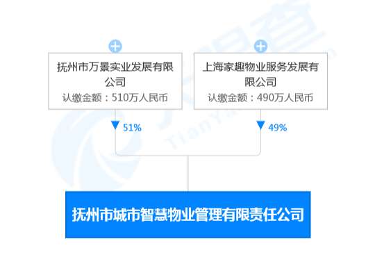 中標供應商撫州市城市智慧物業(yè)管理有限責任公司為“混合所有制企業(yè)”,成立于2022年1月,注冊資本1000萬元,由撫州市城市文化旅游服務發(fā)展集團有限公司全資子公司撫州市萬景實業(yè)發(fā)展有限公司(國有資本)與上海家趣物業(yè)服務發(fā)展有限公司(民營資本)合資組建,其中“國有資本”持股51%。
