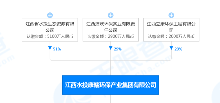 中標供應商江西水投康贛環(huán)保產(chǎn)業(yè)集團有限公司為“混合所有制企業(yè)”,成立于2015年12月,注冊資本10000萬元,由江西省水利投資集團全資子公司江西省水投生態(tài)資源有限公司(國有資本)與江西立康環(huán)保工程有限公司、江西潔歡環(huán)保實業(yè)有限責任公司(民營資本)合資組建,其中“國有資本”持股51%。
