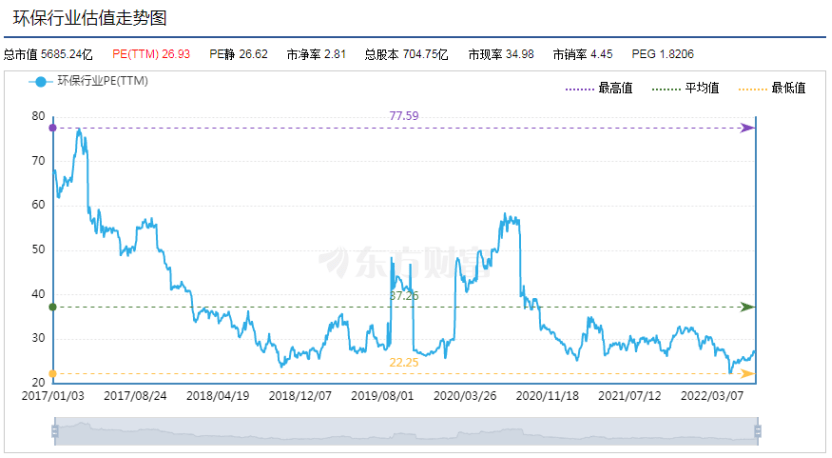 事實上,這是環(huán)保行業(yè)公司的久病。據(jù)統(tǒng)計2021年,176家上市環(huán)保企業(yè)中,有70家凈利潤同比下滑,下滑比例接近四成。不僅如此,市場對環(huán)保行業(yè)公司的估值明顯低于其他行業(yè)。在行業(yè)板塊估值排名中,環(huán)保行業(yè)整體估值26.93倍,排名倒數(shù)第22位。