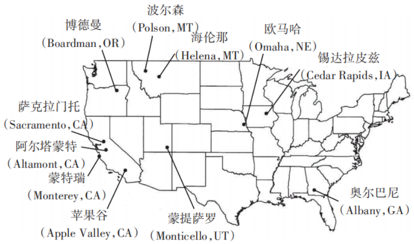 在對土質覆蓋層進行的現場試驗研究中,最具代表性的項目當屬US EPA資助的ACAP項目。該項目旨在評價替代型土質覆蓋層的現場防滲性能,并為替代型土質覆蓋層的設計、施工及后期維護提供必要的指導。ACAP項目于1998年啟動,先后在美國干旱、半干旱、半濕潤及濕潤地區(qū)的11個不同填埋場(圖7)建設了10個傳統(tǒng)阻斷型覆蓋層試驗基地和14個替代型土質覆蓋層現場試驗基地。通過對試驗基地的氣象條件、覆蓋層的徑流、側向導排、土層存儲以及滲漏等指標進行長達1~3 a的監(jiān)測,獲得了各試驗基地的水量平衡數據,對比評估了替代型土質覆蓋層的適用性。ACAP項目的結果表明:在北美的干旱、半干旱和半濕潤地區(qū),單層騰發(fā)式覆蓋層與毛細阻滯覆蓋層的防滲效果與傳統(tǒng)阻斷型覆蓋層相當,而且二者能夠避免土體開裂引發(fā)的大規(guī)模滲漏行為。由此得出,生態(tài)型土質覆蓋層的防滲性能優(yōu)于傳統(tǒng)阻斷型覆蓋層。