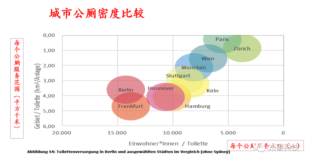 而發(fā)達國家特別是以歐洲為代表,中心城市公廁配置數(shù)量為每萬人1-2座,單位面積公廁數(shù)量多低于1座,配置數(shù)量低于我國提出的標準要求。