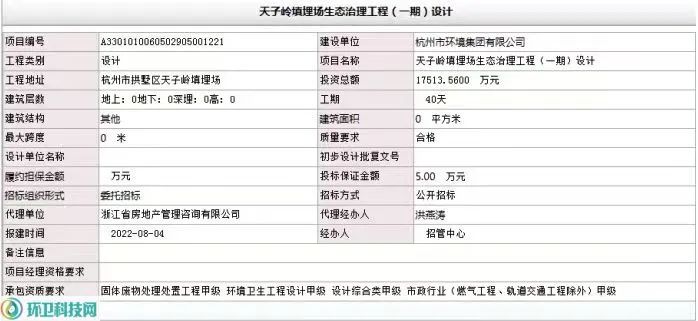 從這份核準(zhǔn)登記文件看,天子嶺填埋場生態(tài)治理工程建設(shè)單位為杭州市環(huán)境集團有限公司,投資總額約1.75億元。
