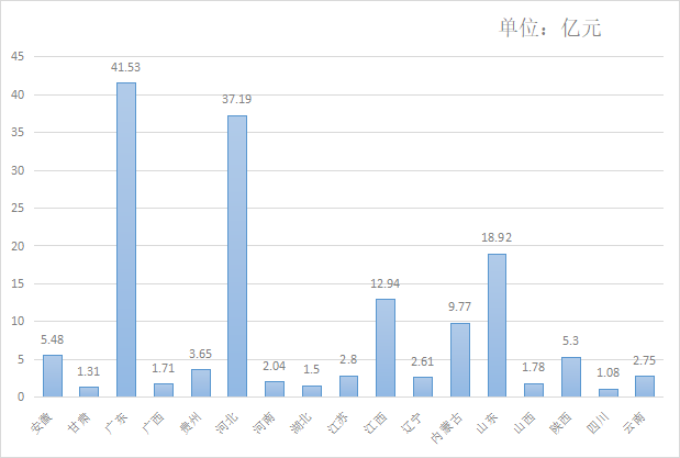 2、山東迎來小高潮,廣東、河北繼續(xù)領(lǐng)跑!8月,安徽、甘肅、廣東、廣西、貴州、河北、河南、湖北、江蘇、江西、遼寧、內(nèi)蒙古、山東、山西、陜西、四川和云南17個省份都有億級環(huán)衛(wèi)項目開標。項目數(shù)量上,河北(6)、廣東(5)、山東(4)分列前三位;項目金額上,仍是廣東、河北和山東排在前列,金額分別為41.53億元、37.19億元和18.92億元。