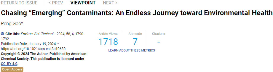 2024年01月19日美國匹茲堡大學(xué)助理教授高鵬博士以“Chasing “Emerging” Contaminants: An Endless Journey toward Environmental Health”為題在EST上發(fā)表了一篇Viewpoint,強調(diào)了關(guān)注新興污染物的同時也需要警惕遺留污染物,并提出了解決這些環(huán)境問題的多種方法和途徑。以下是這篇文章的分享。
