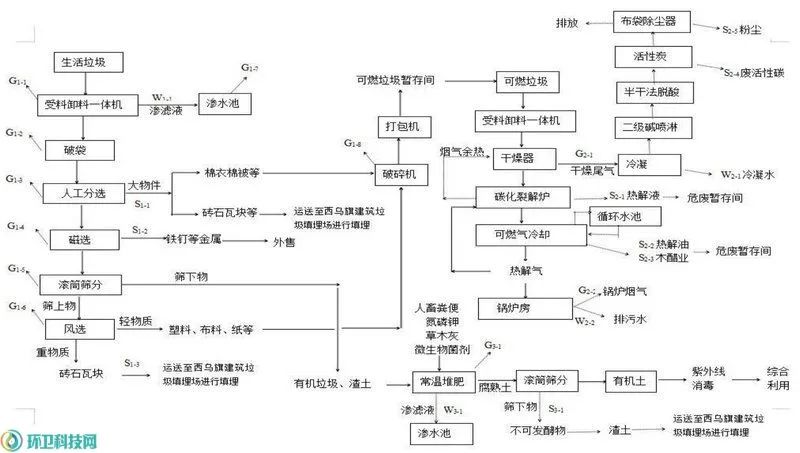 環(huán)境局網(wǎng)站上的公開(kāi)資料顯示,這座生活垃圾處理項(xiàng)目位于西烏珠穆沁旗巴拉嘎?tīng)柛呃真?zhèn)西南側(cè)5.5km處,原計(jì)劃采用熱解工藝,主要建設(shè)一座“生活垃圾資源化處理廠及其附屬設(shè)施工程,購(gòu)置生活垃圾處理設(shè)備”,建成后可日處理生活垃圾200噸,主要產(chǎn)品為碳化裂解爐熱解產(chǎn)生的熱解氣467.2萬(wàn)m3/a和生活垃圾有機(jī)土(常溫)32850t/a。項(xiàng)目總投資6860萬(wàn)元,資金來(lái)源為地方債券和上級(jí)專(zhuān)項(xiàng)資金。其中,環(huán)保投資398萬(wàn)元,占總投資的5.80%。計(jì)劃于2020年8月開(kāi)建,2021年12月投產(chǎn)。但至今,項(xiàng)目也只是進(jìn)行了場(chǎng)地平整,尚未建設(shè)投產(chǎn)。關(guān)于變更生活垃圾處理工藝的原因,環(huán)評(píng)文件表示,這是根據(jù)“EPC承包單位多年運(yùn)行經(jīng)驗(yàn)及項(xiàng)目區(qū)域生活垃圾成分復(fù)雜、水分含量高等特點(diǎn),高溫?zé)峤夤に嚿袩o(wú)法有效處理當(dāng)?shù)厣罾?,主要體現(xiàn)在熱解爐運(yùn)行不穩(wěn)定、排渣不順暢、產(chǎn)生的可燃?xì)怏w成分復(fù)雜、難以有效利用”。因此,建設(shè)單位根據(jù)需求及同類(lèi)型企業(yè)實(shí)際生產(chǎn)情況,擬將原有生活垃圾熱解工藝變更為生活垃圾焚燒工藝并配套汽輪發(fā)電機(jī)組。變更后,項(xiàng)目將配置1臺(tái)200t/d機(jī)械爐排爐+1臺(tái)14t/h中溫低壓(400℃,2.5MPa)余熱鍋爐+1臺(tái)額定1.2MW的凝汽式汽輪機(jī)+1臺(tái)1.2MW發(fā)電機(jī),年運(yùn)行時(shí)間8000小時(shí),年平均發(fā)電量960×10^4kWh/a,所發(fā)電量全部用于廠內(nèi)自用。項(xiàng)目總投資仍為6860萬(wàn)元,但環(huán)保投資增至872.05萬(wàn)元,占總投資的12.71%。從2020年至今,時(shí)隔4年依舊未動(dòng)工,最終卻由EPC承包單位指出工藝不可行,那這個(gè)胎死腹中的“高溫?zé)峤狻表?xiàng)目究竟是一個(gè)什么樣的處理流程呢?環(huán)評(píng)文件顯示,變更之前,項(xiàng)目生活垃圾綜合利用處理系統(tǒng)由生活垃圾收運(yùn)系統(tǒng)、生活垃圾分選系統(tǒng)、可燃垃圾熱解系統(tǒng)和有機(jī)質(zhì)堆肥發(fā)酵系統(tǒng)四部分組成。其中的垃圾收運(yùn)、垃圾分選和垃圾堆肥基本沒(méi)什么好說(shuō),我們忽略,重點(diǎn)看垃圾熱解這個(gè)核心工藝。環(huán)評(píng)報(bào)告顯示,項(xiàng)目原計(jì)劃配置一臺(tái)碳化裂解爐,該碳化裂解爐可實(shí)現(xiàn)對(duì)含水量不超過(guò)30%、規(guī)格在50-100mm之間的物料進(jìn)行熱解氣化。生活垃圾碳化裂解系統(tǒng)主要包括:干燥脫水系統(tǒng)、碳化裂解系統(tǒng)、出料系統(tǒng)、熱解氣凈化和管網(wǎng)系統(tǒng),其中干燥脫水系統(tǒng)包括:干燥器上料機(jī)、干燥器、干物料儲(chǔ)倉(cāng)等;碳化裂解系統(tǒng)包括:提斗式上料機(jī)、爐頂儲(chǔ)倉(cāng)、密封裝置、螺旋進(jìn)料裝置、高溫密封裝置、反應(yīng)釜、爐體加熱裝置、爐內(nèi)攪拌裝置、攪拌高溫密封裝置、攪拌動(dòng)力裝置、爐內(nèi)余熱回收裝置等;出料系統(tǒng)包括:出料螺旋裝置、出料高溫密封裝置、熱解渣集中出料裝置、熱解氣出氣裝置等;熱解氣凈化和管網(wǎng)系統(tǒng)包括:熱解氣除塵裝置、熱解氣冷卻裝置、真空裝置、水氣分離裝置、木醋液與裂解油分離裝置等。根據(jù)廠家前期測(cè)試數(shù)據(jù),一噸可燃垃圾可產(chǎn)氣200m3,產(chǎn)渣30kg,產(chǎn)木醋液40kg,產(chǎn)焦油2kg,垃圾熱解率為3%。本裝置將物料一次性或連續(xù)性加入反應(yīng)釜內(nèi)進(jìn)行熱解氣化,生成可燃?xì)怏w為混合氣體,主要含有一氧化碳、氫氣、甲烷等。在反應(yīng)釜內(nèi)由上向下通過(guò)羅茨鼓風(fēng)機(jī)將氣體輸送至管網(wǎng)。鑒于生物質(zhì)氣所含的主要雜質(zhì)是焦油和灰塵,本項(xiàng)目采用“旋風(fēng)除塵器”、“熱交換器”、“氣液分離器”等對(duì)熱解氣進(jìn)行凈化處理,除掉灰塵和焦油等物質(zhì)。基本生產(chǎn)流程是:可燃垃圾→干燥脫水→碳化裂解→旋風(fēng)除塵→冷卻→氣液分離→阻火→管網(wǎng)→阻火→供氣。熱解產(chǎn)生的熱解氣中約1/3直接用作碳化裂解爐作燃料,剩余約2/3通過(guò)地下輸配系統(tǒng)輸送到各用氣設(shè)備,多余燃?xì)膺M(jìn)入火炬燃燒系統(tǒng)。變更前項(xiàng)目生活垃圾處理工程工藝流程如圖1。自從2022年12月,國(guó)家發(fā)改委、住建部、生態(tài)環(huán)境部等五部委聯(lián)合印發(fā)《關(guān)于加強(qiáng)縣級(jí)地區(qū)生活垃圾焚燒處理設(shè)施建設(shè)的指導(dǎo)意見(jiàn)》,明確要求“以中西部和東北地區(qū)、邊境地區(qū)為重點(diǎn),選取人口密度較低、垃圾產(chǎn)生量較少的部分縣級(jí)地區(qū)積極開(kāi)展小型焚燒試點(diǎn)”之后,國(guó)內(nèi)一度出現(xiàn)一股使用熱解工藝的“小型垃圾焚燒項(xiàng)目”,但對(duì)此工藝的爭(zhēng)議卻一直頗多,焦點(diǎn)就在于熱解到底是否適于處理生活垃圾?熱解,作為一個(gè)誕生于19世紀(jì)的技術(shù),最初是用于煤化工,缺乏油氣資源的德國(guó)人采用熱解工藝處理煤炭,獲取燃油、燃?xì)獾犬a(chǎn)品。后來(lái),人們?cè)谔幚韽U舊塑料、廢輪胎等橡膠制品、醫(yī)療廢物及農(nóng)林生物質(zhì)等固