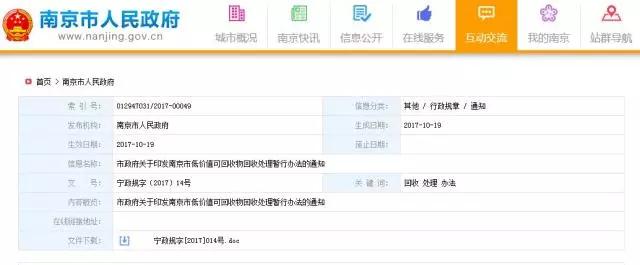 南京市低價(jià)值可回收物回收處理暫行辦法