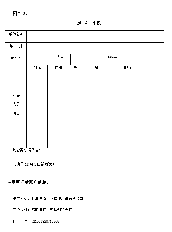 附件2:參會(huì)回執(zhí)及賬戶信息