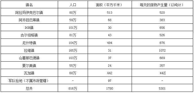 拉合爾下轄9鎮(zhèn)的人口、面積以及廢物產(chǎn)生量
