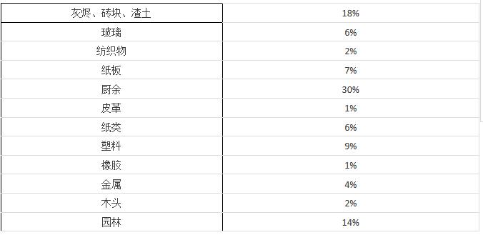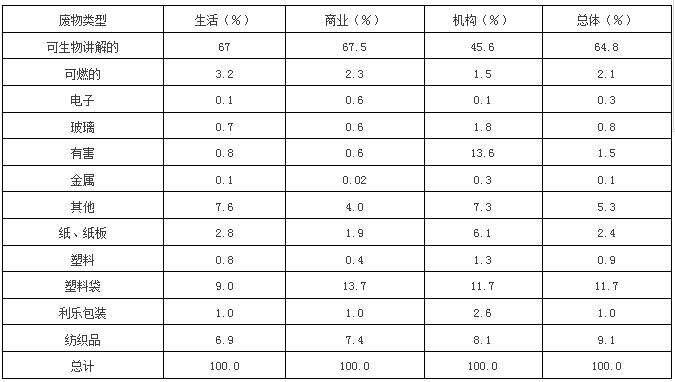 巴基斯坦城市固體廢物的組成情況