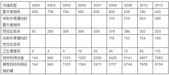 2012年時(shí),菲律賓全國有7683個(gè)回收利用設(shè)施,滿足了8704個(gè)鎮(zhèn)的需求。下表列出了菲律賓全國回收利用設(shè)施的狀況。