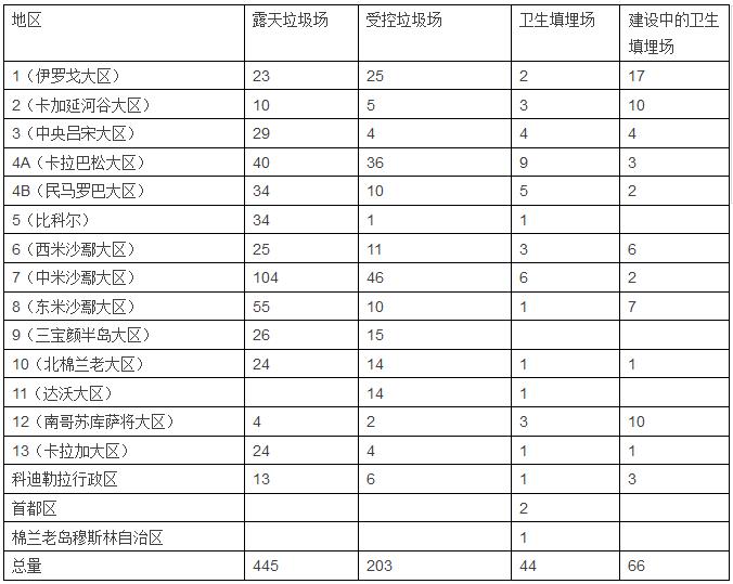 2012年時(shí)菲律賓全國垃圾場(chǎng)和填埋場(chǎng)在各大區(qū)的分布情況