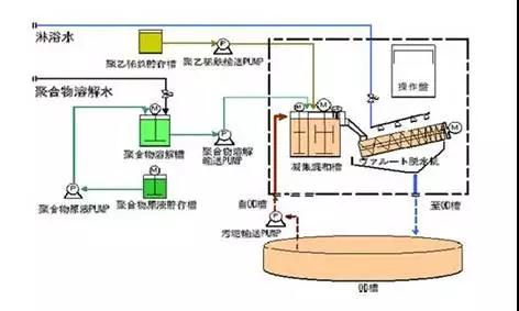 為了更好地提高氣浮處理效果,在回流加壓溶氣氣浮工藝中向廢水中投入某種絮凝劑,使水中難沉淀的膠體狀懸浮顆粒或乳化污染物失穩(wěn),在互相碰撞的作用下,聚集、聚合或搭接形成較大的顆粒或絮狀物,從而使得污染物能夠更容易下沉或上浮而被去除。