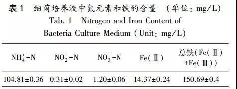 研究中的厭氧氨氧化活性污泥菌落是項目組的前期研究成果,來自于大寶山森林土,以氨氮(NH4+)和Fe(Ⅲ)富集培養(yǎng)得到具有較高厭氧鐵氨氧化反應(yīng)速率的菌落。細(xì)菌培養(yǎng)液中含有的氮元素及鐵形態(tài)如表1所示。