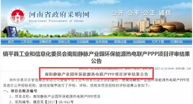 河南省政府采購(gòu)網(wǎng)16日發(fā)布南陽(yáng)靜脈產(chǎn)業(yè)園環(huán)保能源熱電聯(lián)產(chǎn)PPP項(xiàng)目評(píng)審結(jié)果公告,第一中標(biāo)候選人為上海康恒環(huán)境股份有限公司。