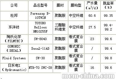 世界各生產(chǎn)膜組件的公司仍十分重視RO膜與組件的技術(shù)創(chuàng)新,目的在于開發(fā)抗氧化、耐細菌侵蝕的新膜提高膜與組件的產(chǎn)水量、脫鹽率等。這些工作已取得一定的進展,如美國DOW公司推出 FILMTEC BW30LE-440膜元件,在約1.05MPa壓力下,產(chǎn)水量43.5m3/d,脫鹽率大于99%,一個新元件幾乎相當換代前的兩倍。Fluid Systems公司推出 Premium TFC新元件,其苦咸水和海水膜元件的脫鹽率分別高達99.7%和99.8%。日本的東麗公司和日東電工公司己開發(fā)出可耐9.0MPa的海水淡化膜,并己在西班牙建造了回收率高在60%的兩段RO海淡化裝置。