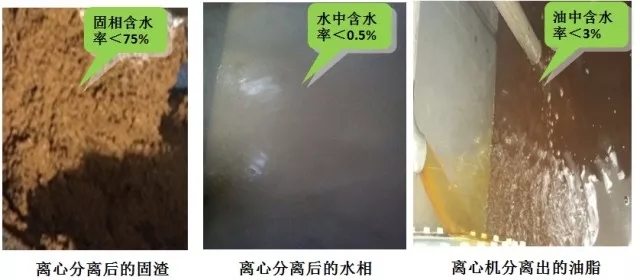 油脂分離主要是將除雜后的漿液進(jìn)行加熱,通過采用二級熱解離心提油工藝方式,保證油相的品質(zhì),油脂提取后得到含油率<0.5%的污水,含水率≤3%的粗油脂,經(jīng)濟(jì)價(jià)值顯著。