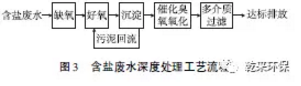 制藥廢水雖然產(chǎn)生量小,但是具有含鹽量高、污染物濃度高、污染嚴重、危害大等特點,采用常規(guī)的物化及生物法處理后難以達標,制藥廢水一直是水處理領域所關注的熱點和難點。郗金娥等經(jīng)過對某醫(yī)藥廢水的分析和研究,將廢水分為高鹽廢水、高濃度難生化廢水和綜合廢水。對高含鹽廢水采用二次蒸發(fā)系統(tǒng)回收一價鈉鹽,冷凝水進入調(diào)節(jié); 難生化廢水采用臭氧預處理,出水進入調(diào)節(jié)池。高鹽廢水及難生化廢水經(jīng)過處理后的出水與洗滌廢水、工程生活污水等充分混合,這種綜合廢水再采用兩級厭氧+ 好氧+ 高級氧化進行深度處理。
