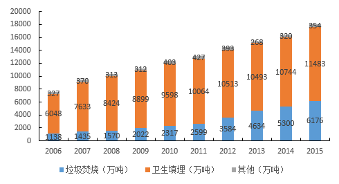 圖1中國(guó)城市垃圾處理情況