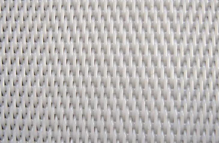 濃縮壓濾一體機(jī)主要利用了濾帶能把水分過(guò)濾掉,而把污泥截留到濾帶上的原理進(jìn)行的。濾帶是用高強(qiáng)度的聚酯和尼龍材料的絲線編制而成,這些材料的絲線通過(guò)特殊的編織方法做成濾帶后,在高壓拉拽的作用下能保持不變形,下面是一個(gè)濾帶的截圖,水分正是通過(guò)濾帶編織的絲線之間的縫隙流走的。
