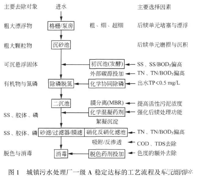 1 一級A穩(wěn)定達(dá)標(biāo)的主要工藝單元考慮