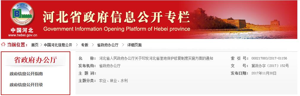 日前,河北省政府印發(fā)《河北省濕地保護(hù)修復(fù)制度實施方案》。全文如下: