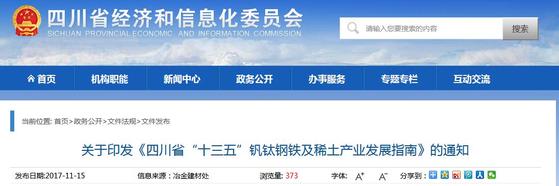 關(guān)于印發(fā)《四川省“十三五”釩鈦鋼鐵及稀土產(chǎn)業(yè)發(fā)展指南》的通知