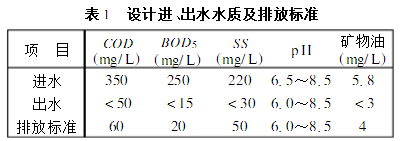 北京航天城污水處理廠是為北京航天工程服務(wù)的,根據(jù)北京航天工程環(huán)境評(píng)價(jià)報(bào)告書所列數(shù)據(jù),污水處理廠隨航天工程的發(fā)展分二期建設(shè),設(shè)計(jì)處理能力為7200m3/d,一期工程污水量為3600m3/d,主要包括工業(yè)廢水、生活污水和門診部污水,各自所占比例為1810%、8115%、015%,因此其污水主要是生活污水,污染物包括有機(jī)物、懸浮物和油類等。設(shè)計(jì)進(jìn)、出水水質(zhì)及排放標(biāo)準(zhǔn)(北京市水污染物排放二級(jí)標(biāo)準(zhǔn))見表1。