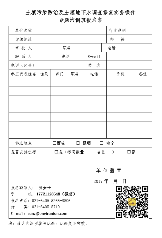 附件:土壤污染防治及土壤地下水調(diào)查修復(fù)實(shí)務(wù)操作專題培訓(xùn)班報名表
