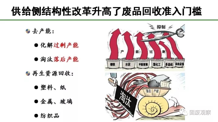 短缺經(jīng)濟時代與過剩經(jīng)濟時代,自力更生時代與全球化時代,環(huán)境容量大的時代與環(huán)境容量小的時代,分類回收策略不同。我們目前廢品回收行業(yè)大多只能生產(chǎn)低端產(chǎn)品,但市場越來越小了。相當一批廢品回收企業(yè)屬“散亂污”,以污染環(huán)境為代價維持生產(chǎn)獲取利潤。在此輪環(huán)保督察中,大批廢品回收利用企業(yè)因環(huán)保不達標或無污染防止設(shè)施被關(guān)停。