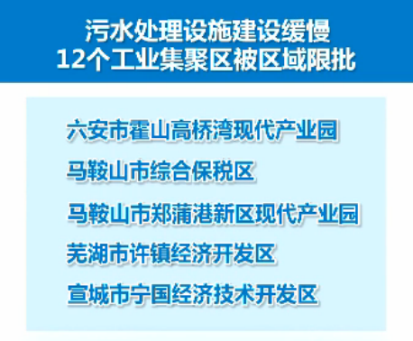 被區(qū)域限批的工業(yè)集聚區(qū)分別是合肥市廬江龍橋工業(yè)園區(qū)、淮北市杜集經(jīng)濟(jì)開發(fā)區(qū)、蚌埠市懷遠(yuǎn)龍亢經(jīng)濟(jì)開發(fā)區(qū)、淮南市平圩經(jīng)濟(jì)開發(fā)區(qū)、安徽(淮南)現(xiàn)代煤化工產(chǎn)業(yè)園、六安市霍山高橋?yàn)超F(xiàn)代產(chǎn)業(yè)園、馬鞍山市綜合保稅區(qū)、馬鞍山市鄭蒲港新區(qū)現(xiàn)代產(chǎn)業(yè)園、蕪湖市許鎮(zhèn)經(jīng)濟(jì)開發(fā)區(qū)、宣城市寧國經(jīng)濟(jì)技術(shù)開發(fā)區(qū)、安徽涇縣云嶺經(jīng)濟(jì)開發(fā)區(qū)、銅陵市獅子山高新技術(shù)產(chǎn)業(yè)開發(fā)區(qū),共涉及9個市。