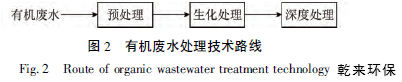 有機廢水生化處理是“廢水零排放”的基礎(chǔ),如果處理后殘留有機物濃度過高,極易污染后續(xù)處理單元膜,導(dǎo)致膜通量降低,影響系統(tǒng)正常運行。有機廢水處理技術(shù)路線如圖2 所示。