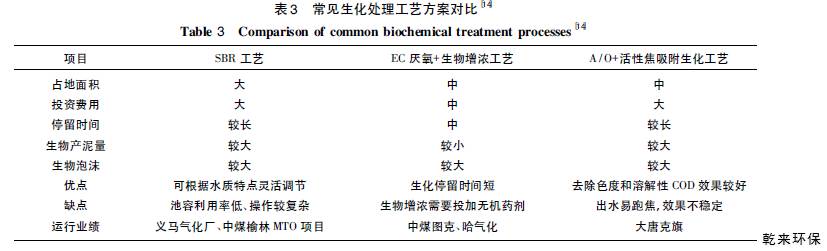 對于魯奇氣化工藝所產(chǎn)廢水建議采用厭氧/水解+二級A/O 工藝,去除大部分酚、COD、氨氮、總氮等。對于粉煤爐或水煤漿爐氣化所產(chǎn)廢水建議采用二級A/O 工藝,去除大部分氨氮、總氮。常見生化處理工藝方案對比[14]見表3。