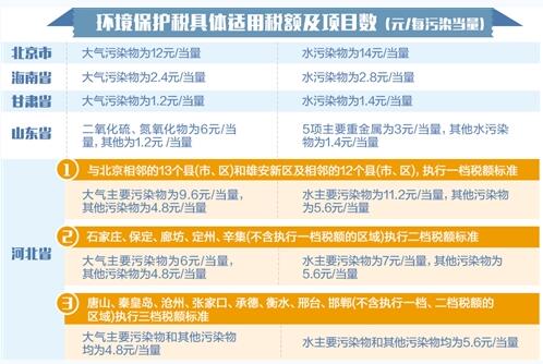 日前,北京市應(yīng)稅大氣污染物和水污染物適用稅額標(biāo)準(zhǔn)獲市人大常委會(huì)審議通過,分別為每污染當(dāng)量12元和14元,按法定幅度“頂格”執(zhí)行。從目前各地發(fā)布的方案來看,環(huán)保稅稅額標(biāo)準(zhǔn)相對(duì)較高的有北京、上海、天津、河北、山東等地。以應(yīng)稅大氣污染物適用稅額標(biāo)準(zhǔn)為例,河北按照國(guó)家規(guī)定最低標(biāo)準(zhǔn)的8倍、5倍、4倍執(zhí)行;上海二氧化硫、氮氧化物的稅額標(biāo)準(zhǔn)分別為每污染當(dāng)量6.65元和7.6元;山東二氧化硫、氮氧化物每污染當(dāng)量6元。