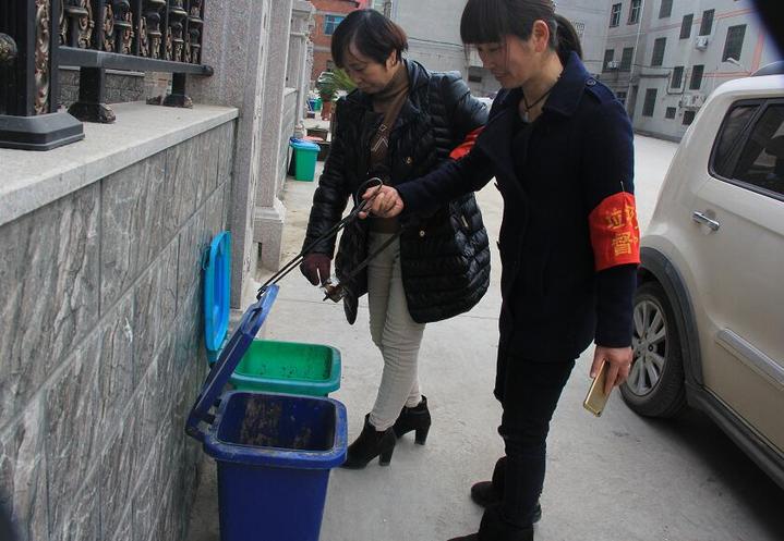 按照制度設(shè)計,每戶村民需從源頭分類、定時定點投放。剛開始村干部、黨員代表、婦聯(lián)成員每天定崗輪值,在垃圾投放點現(xiàn)場宣傳,指導村民投放垃圾。同時,根據(jù)具體情況,黨員、代表就近、就便、就親負責3-10戶村民,并由婦聯(lián)成員開展每天一次的入戶檢查,做好評比記錄,在公告欄上張貼。
