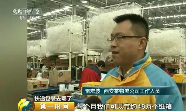 西安某物流公司工作人員 雷宏波:每個月我們可以節(jié)約48萬個紙箱,按照一個紙箱按照0.1公斤算的話,我們每個月可以節(jié)約48噸的紙箱垃圾。