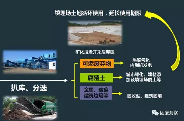 垃圾填埋場(chǎng)是城市的稀缺資源,為延長填埋場(chǎng)的使用年限,使土地循環(huán)使用,舊填埋場(chǎng)整治是必須走的路。通過新中水研究發(fā)現(xiàn),封場(chǎng)6-8年后,垃圾中易降解物質(zhì)完全或接近完全降解,成分基本達(dá)到穩(wěn)定化,可進(jìn)行開采利用的垃圾,通過對(duì)這些舊填埋場(chǎng)的扒庫分選,可分出可燃廢棄物、腐殖土、金屬、玻璃等??扇紡U棄物可熱解氣化用于內(nèi)燃機(jī)發(fā)電;腐殖土可用于城市綠化、建材添加及填埋場(chǎng)覆土等;金屬、玻璃回收利用。