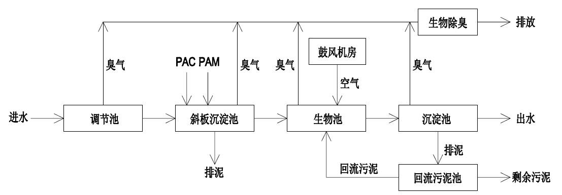根據(jù)經(jīng)驗(yàn)水質(zhì)數(shù)據(jù),最初選定技術(shù)路線(xiàn)為進(jìn)水—調(diào)節(jié)池—斜板沉淀池— 一段生物池— 一段沉淀池—二段生物池—二段沉淀池—出水。脫水后的污泥消化液中除氨氮濃度比較高外,還有較高TP、SS、COD,為了保證反應(yīng)器的脫氮效果,在前端增加混凝沉淀處理單元,去除TP、SS。然后進(jìn)入一段生物池和一段沉淀池,去除COD。將TP、SS、COD去除后進(jìn)入二段生物池和二段沉淀池進(jìn)行脫氮。通過(guò)中試運(yùn)行結(jié)果發(fā)現(xiàn),對(duì)于C/N比不高的污水,一段反應(yīng)池的COD去除率在20-30%之間,此工藝流程僅適用于C/N比高的污水。