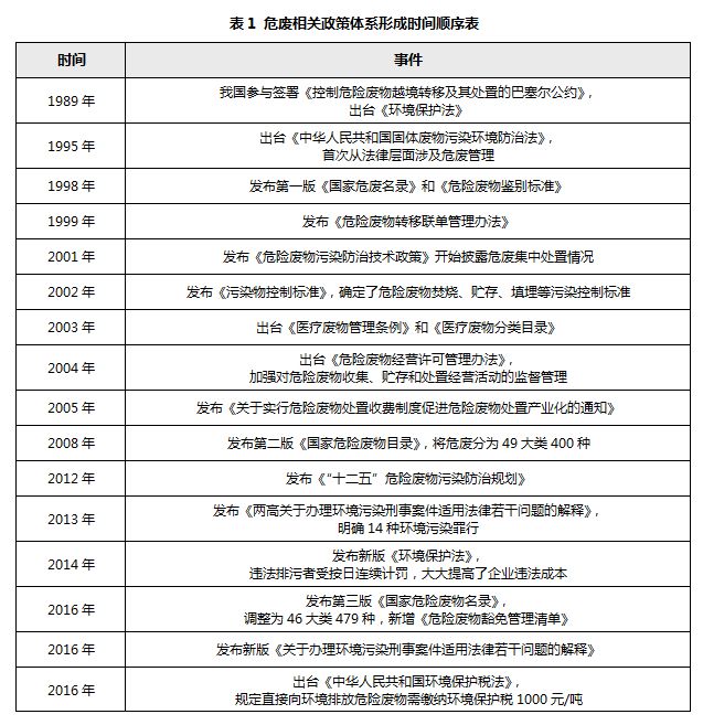 隨著危廢相關(guān)禁令和政策密集出爐,危廢治理市場(chǎng)熱度逐漸提升。我國(guó)政府對(duì)危廢處置行業(yè)高度重視,迄今已形成以《國(guó)家危險(xiǎn)廢物名錄》為核心,覆蓋從危廢鑒別、轉(zhuǎn)移、處置到資質(zhì)、監(jiān)管的危廢治理法規(guī)體系。