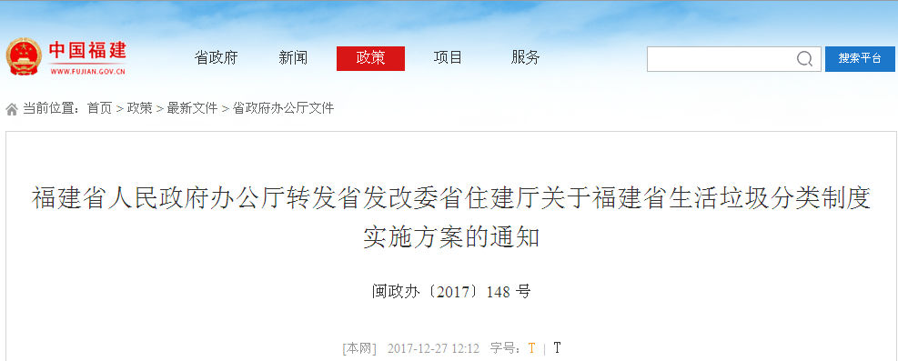 加快出臺(tái)垃圾分類(lèi)實(shí)施辦法,福州市、廈門(mén)市2017年底前出臺(tái)生活垃圾分類(lèi)辦法;其他設(shè)區(qū)市和平潭綜合實(shí)驗(yàn)區(qū)2018年底前出臺(tái)生活垃圾分類(lèi)辦法或?qū)嵤┓桨浮?/p>