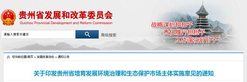 貴州省發(fā)改委發(fā)布《關(guān)于印發(fā)貴州省培育發(fā)展環(huán)境治理和生態(tài)保護(hù)市場(chǎng)主體實(shí)施意見的通知》,提出:
