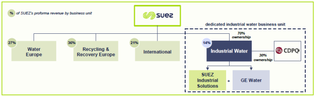 看重了GE水處理在工業(yè)水領域的優(yōu)勢,蘇伊士環(huán)境聯(lián)合加拿大基金公司Caisse de dép?t et placement du Québec (CDPQ)以32億歐元收購了GE的全部股權,兩家將組成合資公司,其中蘇伊士環(huán)境持股70%。Jean-Louis Chaussade先生透露,GE水處理的出售競標已經進行好幾輪了,在第三輪也是最后一輪的對手就剩下了剛剛在去年年底收購了法國家具零售巨頭BUT的美國私募基金 Clayton, Dubilier&Rice。蘇伊士環(huán)境的財務主管Christophe Cross則表示收購一旦正式完成后蘇伊士將對其增資7.5億歐元。
