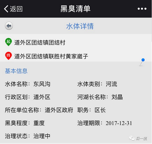 不過,2018年1月8日,環(huán)保部“城市水環(huán)境公眾參與”的微信公眾號(hào)顯示,東風(fēng)溝的治理狀態(tài)仍為”治理中”。