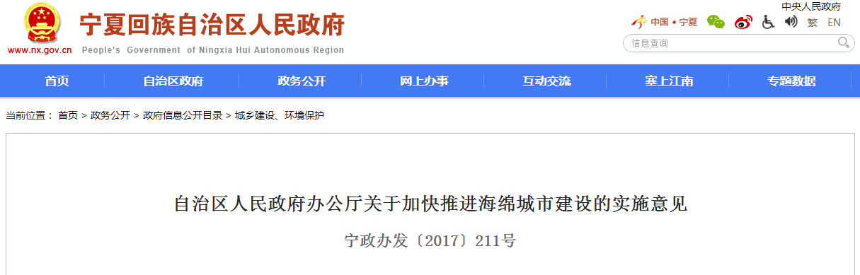 近日,在寧夏回族自治區(qū)人民政府獲悉關(guān)于加快推進(jìn)海綿城市建設(shè)的實(shí)施意見(jiàn),全文如下: