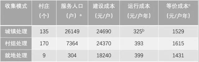 評價鄉(xiāng)村污水治理的直接經(jīng)濟成本應(yīng)以戶均(或人均)投入進行核算,這一點不同于城鎮(zhèn)污水處理廠以噸水投資和噸水運行費作為主要評價指標(biāo)的做法。在鄉(xiāng)村污水治理中,用于保障排水服務(wù)的成本是投資大頭。