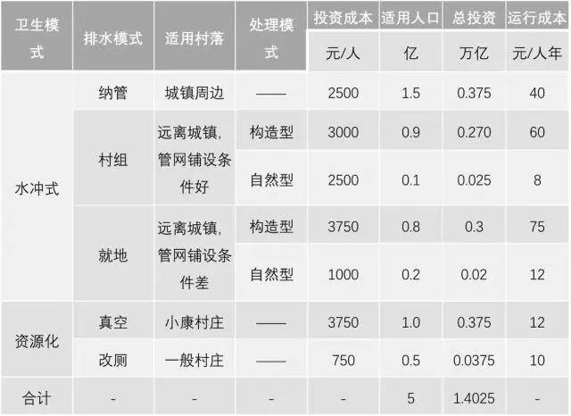 表2 我國鄉(xiāng)村污水治理的成本匡算(以2014年為基準(zhǔn)年)