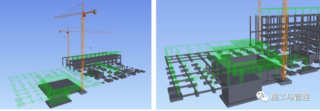 利用BIM軟件建立項(xiàng)目3D總平面布置,模擬施工車輛的進(jìn)出路線,安全措施及安全維護(hù)。建立結(jié)構(gòu)模型進(jìn)行施工工期模擬,對各專業(yè)之間的管線綜合和碰撞檢查,在三維視圖情況下,完成實(shí)際工況模擬及垂直運(yùn)輸工具的布置,優(yōu)化施工專項(xiàng)方案、深化設(shè)計(jì)的應(yīng)用等,為項(xiàng)目施工規(guī)劃及部署創(chuàng)造有利條件,促使項(xiàng)目在施工準(zhǔn)備階段做到布局合理、先進(jìn),經(jīng)濟(jì)。