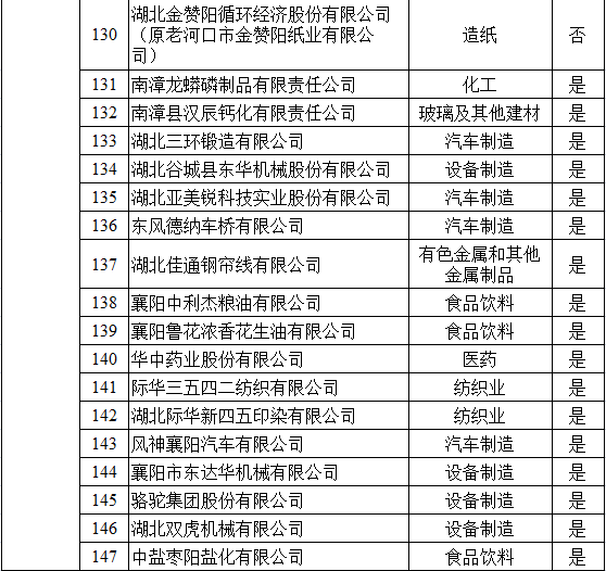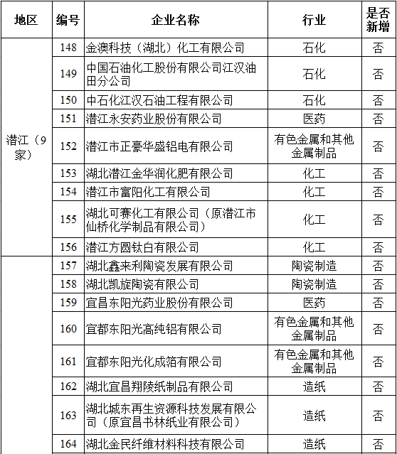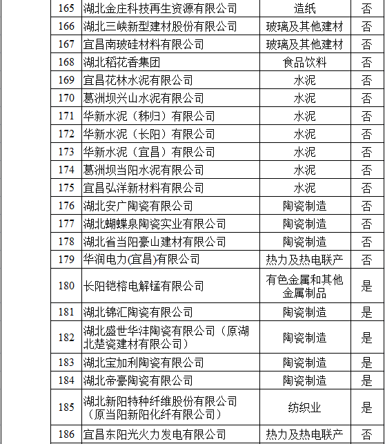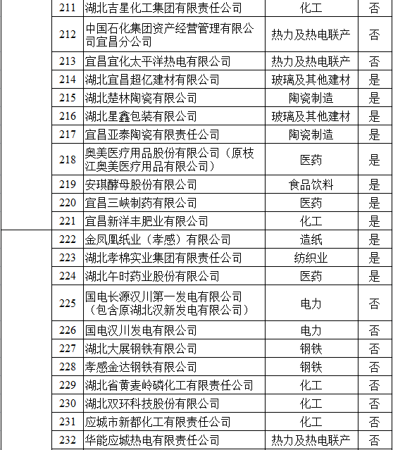 湖北省2017年納入碳排放配額管理企業(yè)清單