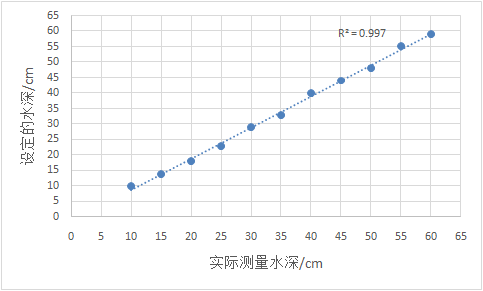 液位計(jì)傳感器是內(nèi)澇監(jiān)控點(diǎn)液位監(jiān)測(cè)系統(tǒng)的重要組成,其監(jiān)測(cè)數(shù)據(jù)直接影響到排水管網(wǎng)的調(diào)度管理決策及深隧排水系統(tǒng)的調(diào)度優(yōu)化研究結(jié)果。液位計(jì)傳感器需要選擇精度高、量程合適、穩(wěn)定性好的類型。此外,由于內(nèi)澇點(diǎn)通常位于城市的馬路上或人行道上,并且分布較為分散,電力和通訊設(shè)備難以匹配到位,應(yīng)選取低能耗的類型;且排水管網(wǎng)的污水環(huán)境較為惡劣,需選用防水等級(jí)IP68、材質(zhì)耐腐蝕的設(shè)備。針對(duì)本系統(tǒng)所選用的壓阻式液位傳感器,在實(shí)驗(yàn)室模擬排水管道窨井,放入液位計(jì)并改變窨井中液位,進(jìn)行實(shí)際測(cè)量液位與設(shè)定液位的線性回歸分析,測(cè)量液位值呈現(xiàn)的線性度良好,測(cè)量值與設(shè)定值線性相關(guān)系數(shù)為0.9975,誤差較小,精度符合要求(見圖2)。此外,在測(cè)試過(guò)程中,同一液位情況下,多次進(jìn)行測(cè)量,測(cè)量液位變化不大,穩(wěn)定性良好。